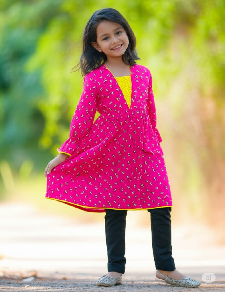 Bring elegance and comfort together with this delightful cotton frock! Designed with high-quality cotton fabric, this dress ensures breathability and softness, perfect for all-day wear.